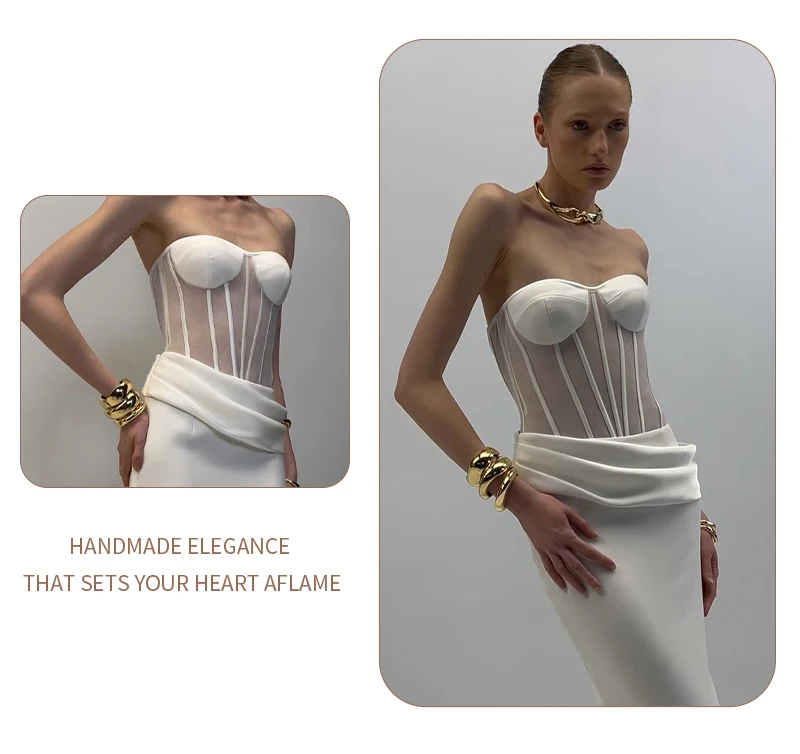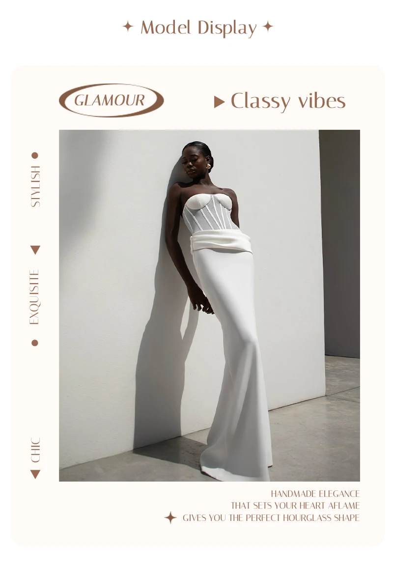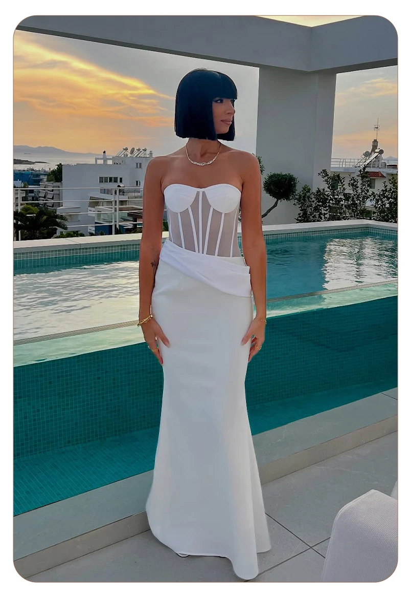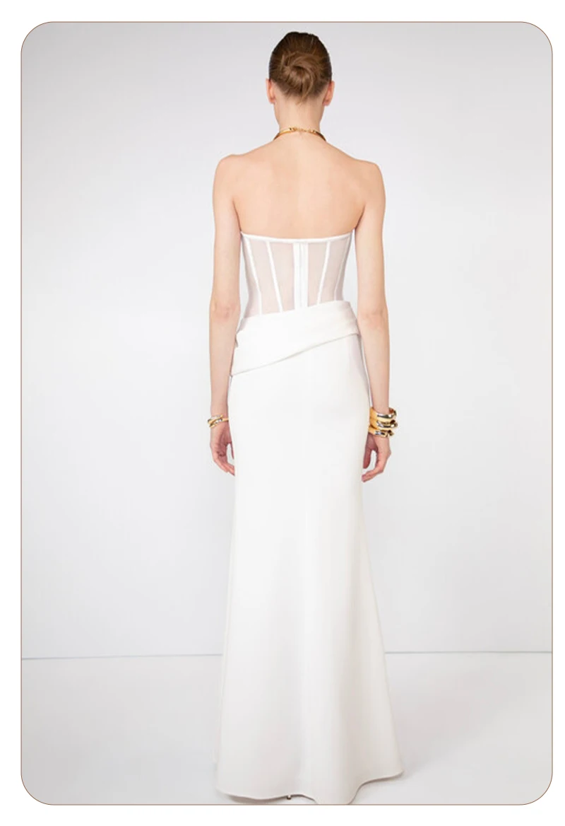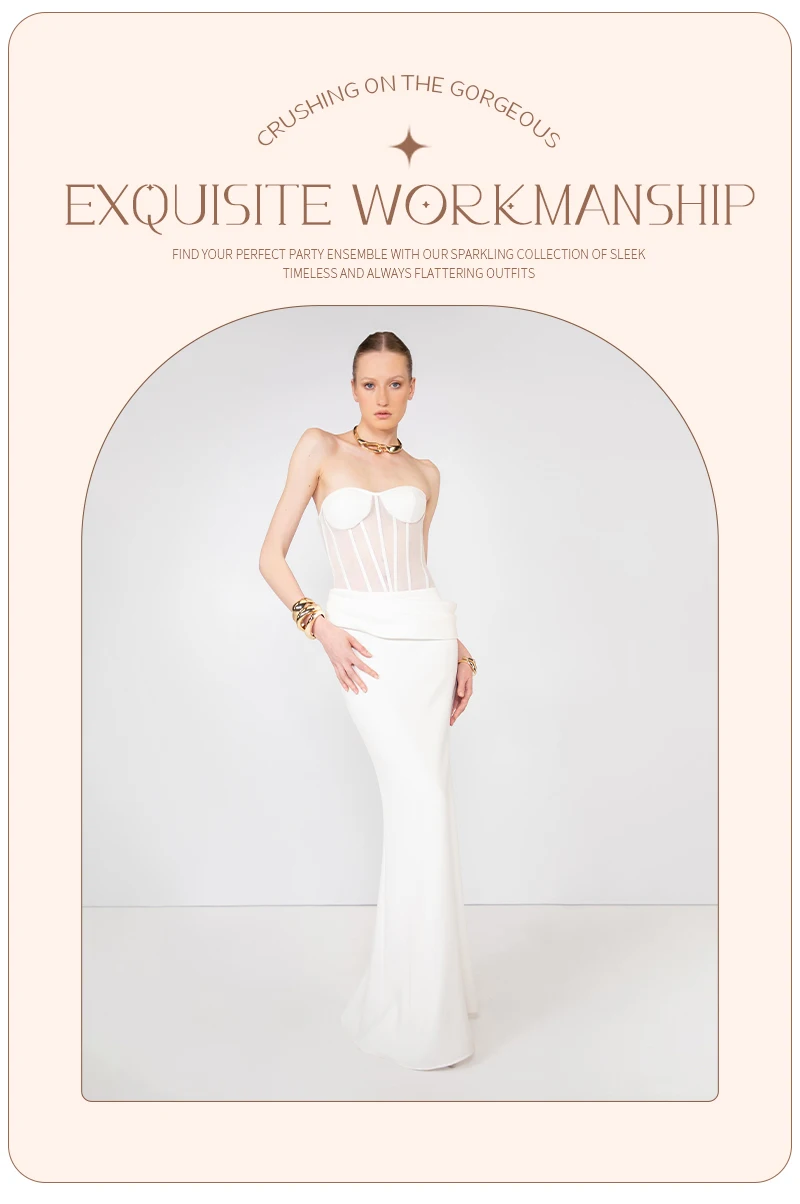 Grace meets modern edge in this elegant white corset gown, a stunning piece that redefines evening sophistication with a contemporary twist. Designed for the confident woman who loves a clean silhouette and timeless allure, this gown perfectly combines structure, femininity, and minimalism.