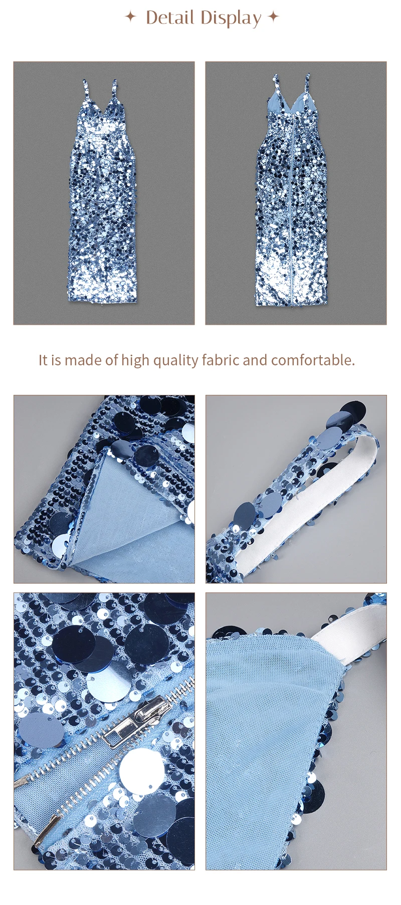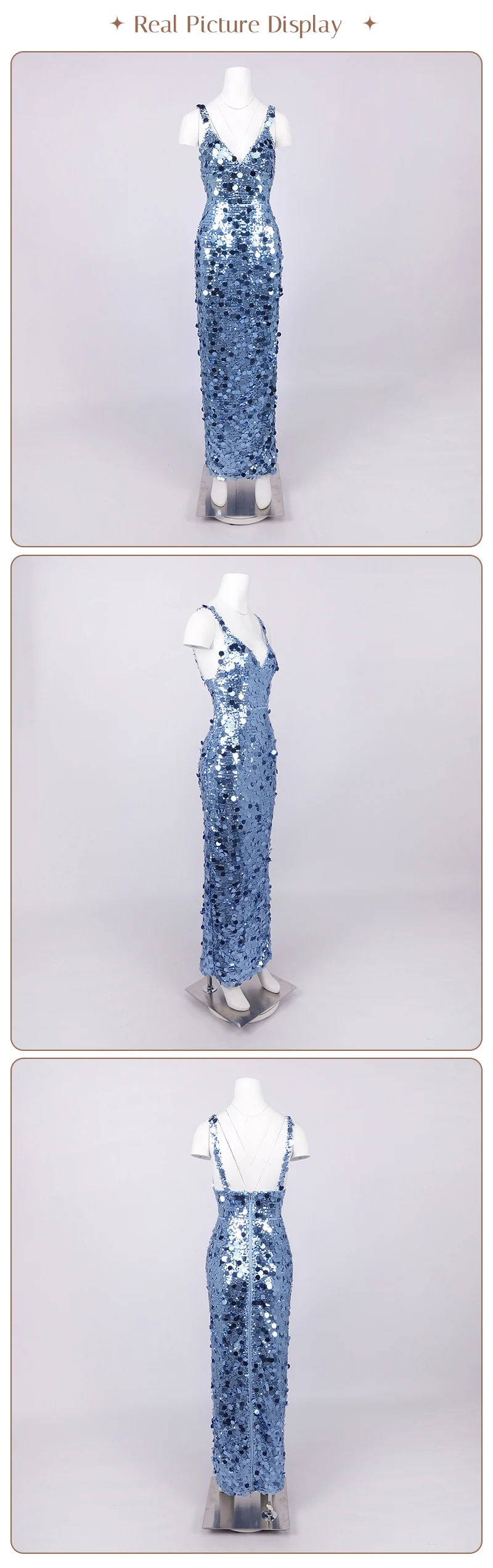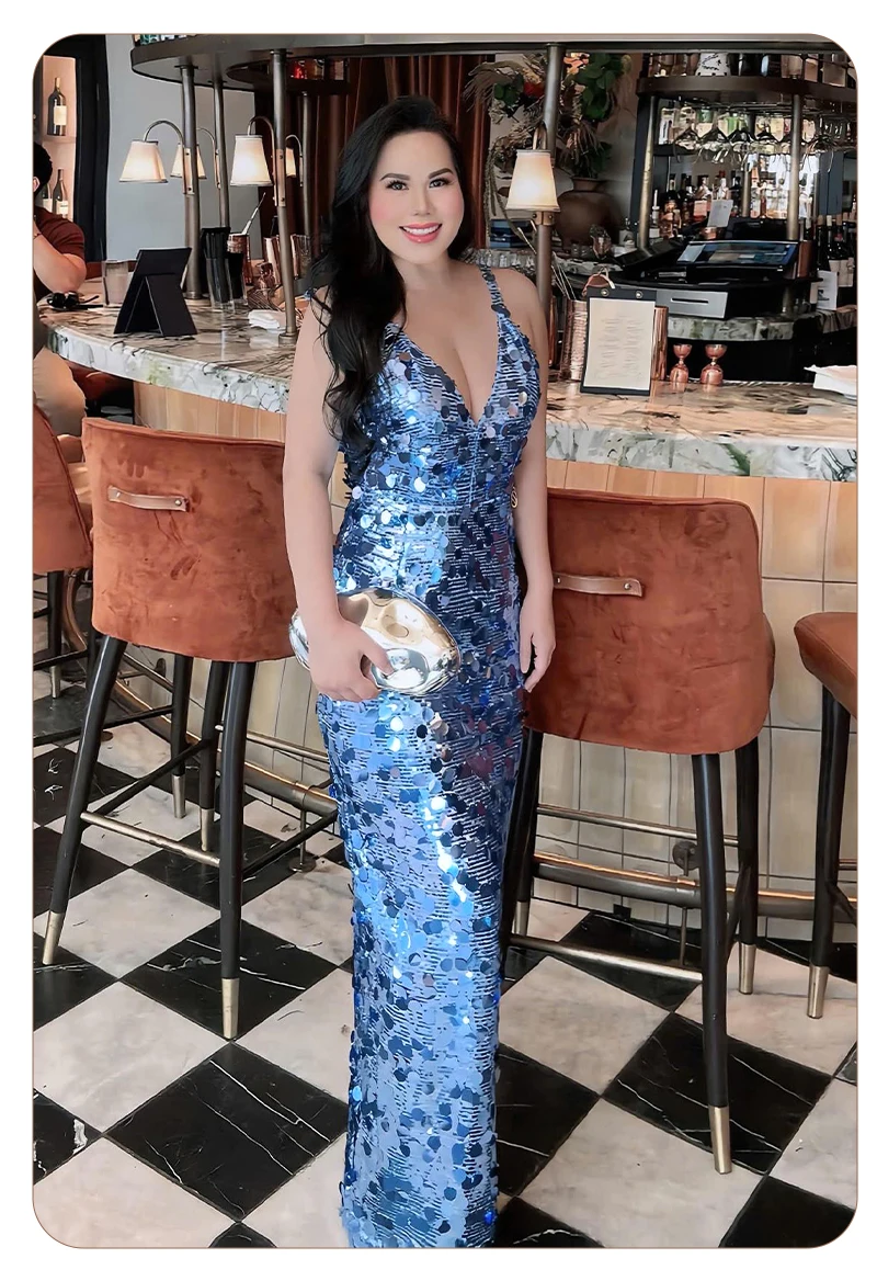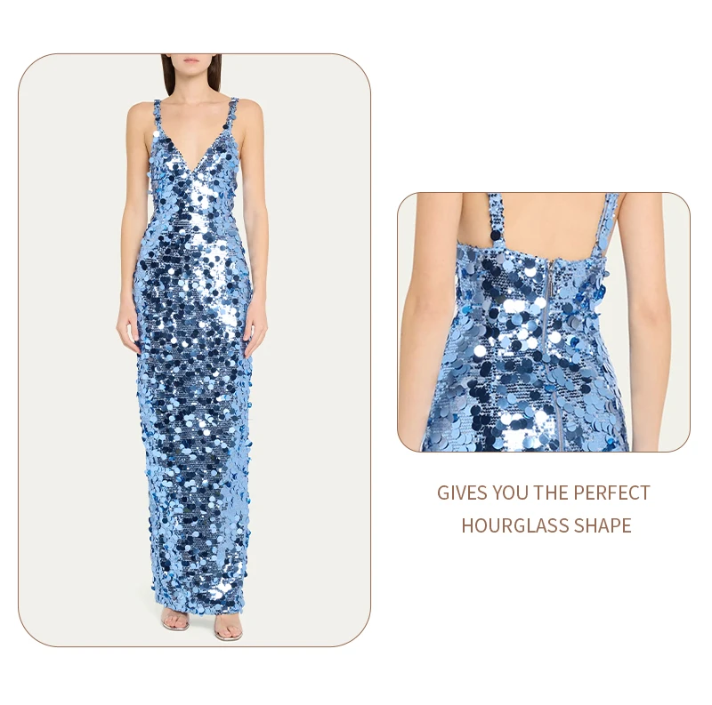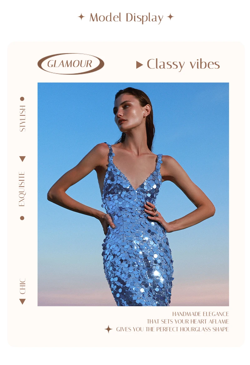 Make a dazzling entrance in this shimmering blue sequin evening gown, a show-stopping piece designed for women who embrace sophistication, glamour, and confidence. Crafted with thousands of reflective sequins in varying sizes, this gown captures light from every angle—creating a mesmerizing sparkle reminiscent of ocean waves or city lights at night.